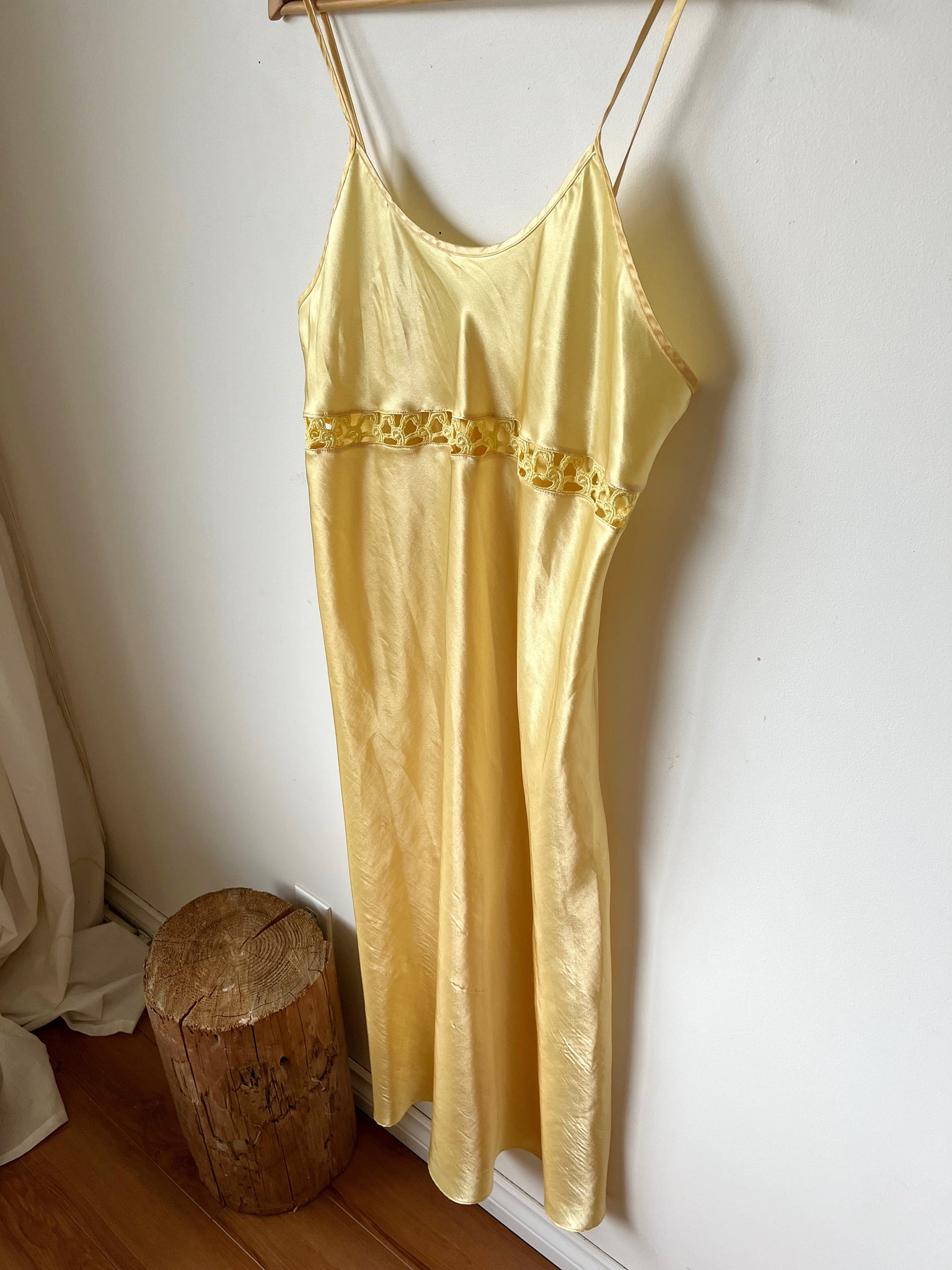 Super sexy vintage yellow slip dress with cutout detail. In excellent vintage condition.